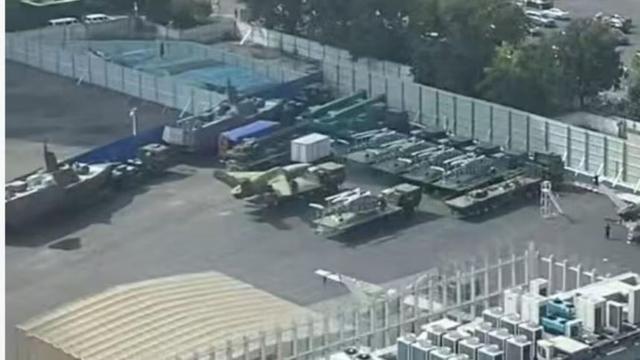一个模糊画面显示,一辆卡车上拉着新型无人机,旁边还有旋翼机和“永龙”无人机,明显是在为9月胜利日阅兵做准备。